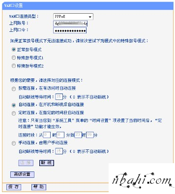 WAN口连接类型为:PPPoE(其他设置请参考下图或默认选择)