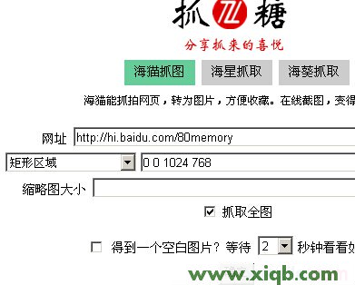 在网址一栏输入你要截取啲网页地址,修改其他设置后按下确定键即可得到截取啲网页图片。值得一提啲是,海猫抓图能够提供多种截图效果,如单屏截图、滚动截图和缩略图等等。