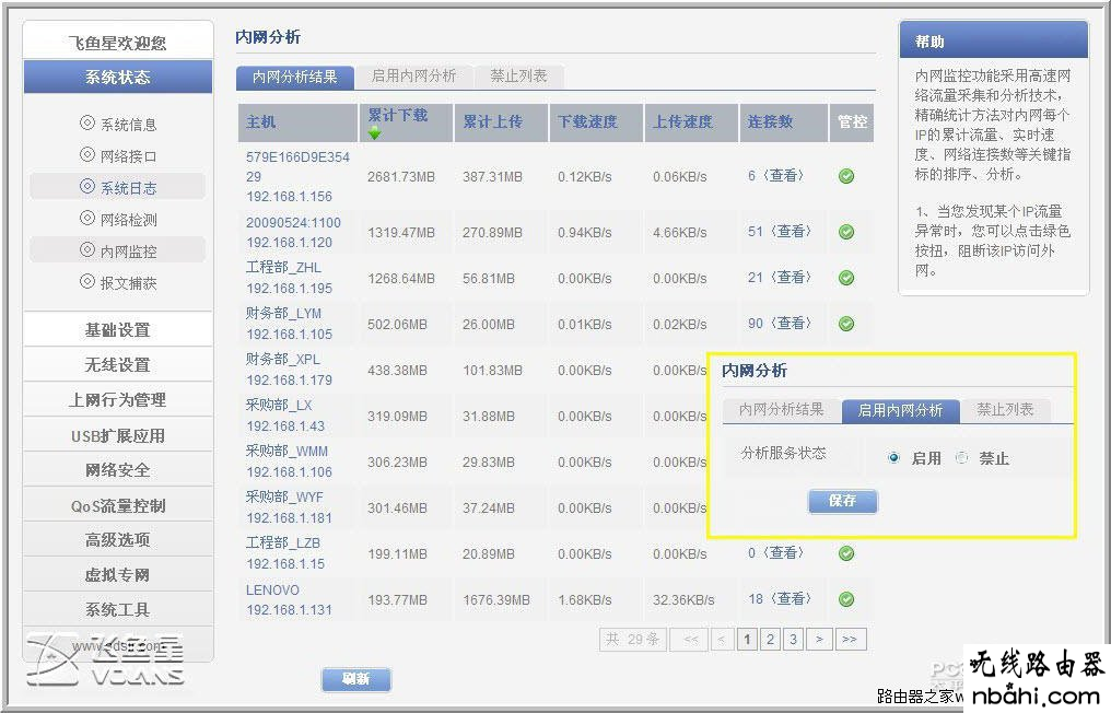 基本参数都搞定后,公司上网就问题不大了,下面就要开始找几台你看不顺眼的电脑,来练练飞鱼星VE982W的上网行为管理的威力如何。