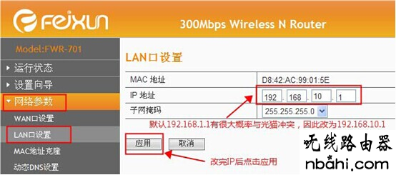 8. 更换路由器 LAN 口IP 地址,避免与光猫冲突