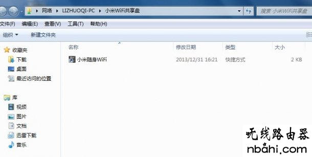 12、当小米wifi装完后,在电脑上还会显示共享盘信息,这样连接到小米wifi上的设备都可以使用共享盘上的数据。