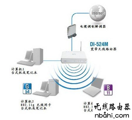 步骤一:连接DI-524M无线宽带路由器到您的网络