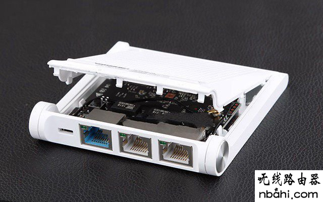 1、小米路由青春版采用卡扣式拼接,拆解起来还是比较方便的,从网卡接口边上的缝隙处可以将底盖翘起,之后就可以将路由器底盖打开了,如图。
