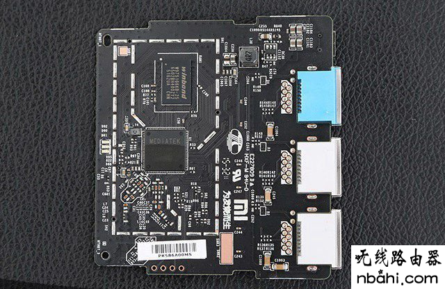 6、图为小米路由器青春版电路板的背面特写,保持了优良的做工,整个电路板的布局紧凑有序,集成度非常高而且焊点很少,可以保证正常使用下的寿命。