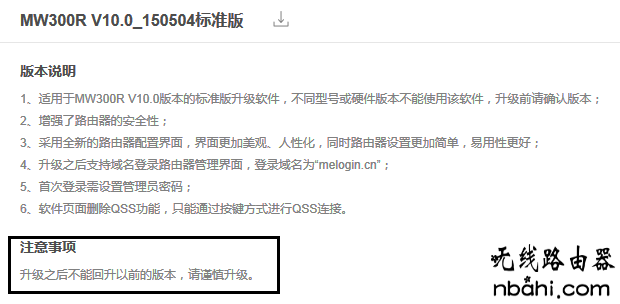 注意:不能升级回旧版本时,一般升级软件的注意事项会有注明,如下图: