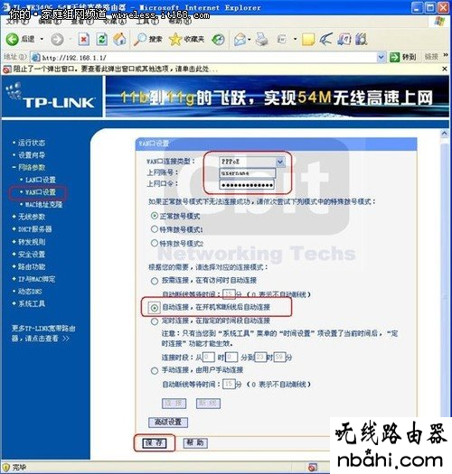 2,在WAN口设置中,设置当前的Internet接入方式,在此例中是PPPoE拨号。